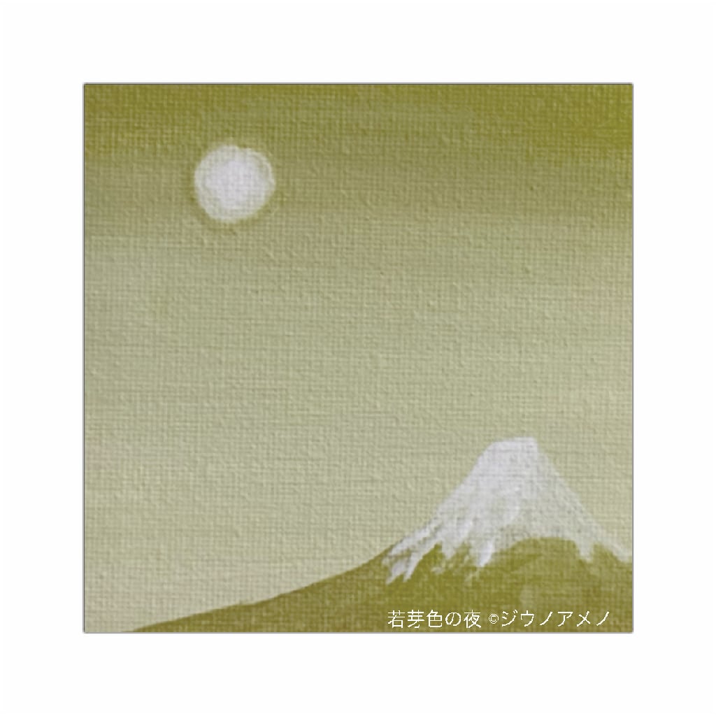 奥行きのある立体的なキューブ型が魅力のアクリルブロック「若芽色の夜」。富士山の美しい姿が、幻想的な色合いで表現されており、どんな空間にも華やかさを添えます!