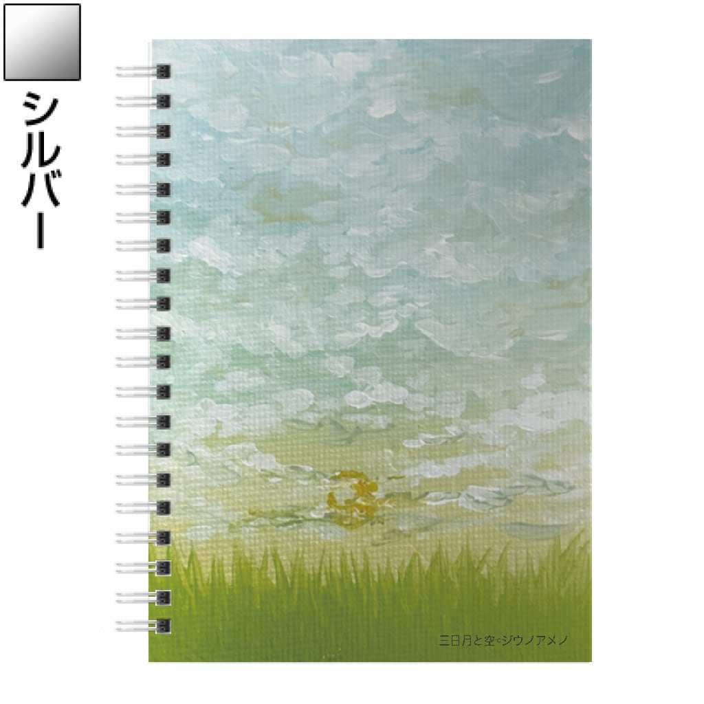 「ノート/三日月と空」は、心を癒す美しいデザインが特徴の特別なノートです。青い空と神秘的な三日月が描かれ、使うたびに心を落ち着かせるアイテムです。