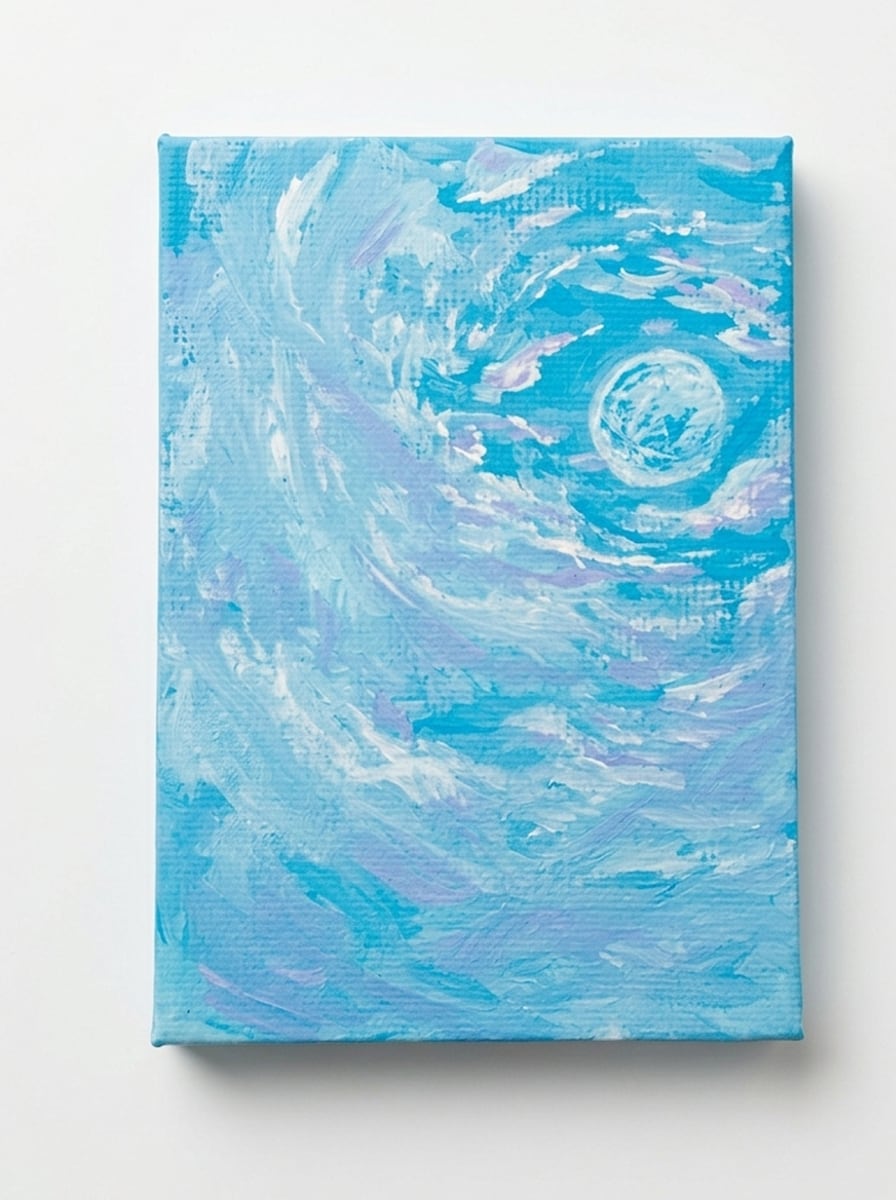 真昼の月の情景は、見るだけで心がほっこりし、リラックスした気分にさせてくれます。ストレスが多い日常の中で、ふと目にした瞬間、心を和らげ、穏やかさをもたらすでしょう。自分だけの空間を豊かにするアイテムとして、ぜひお使いください。